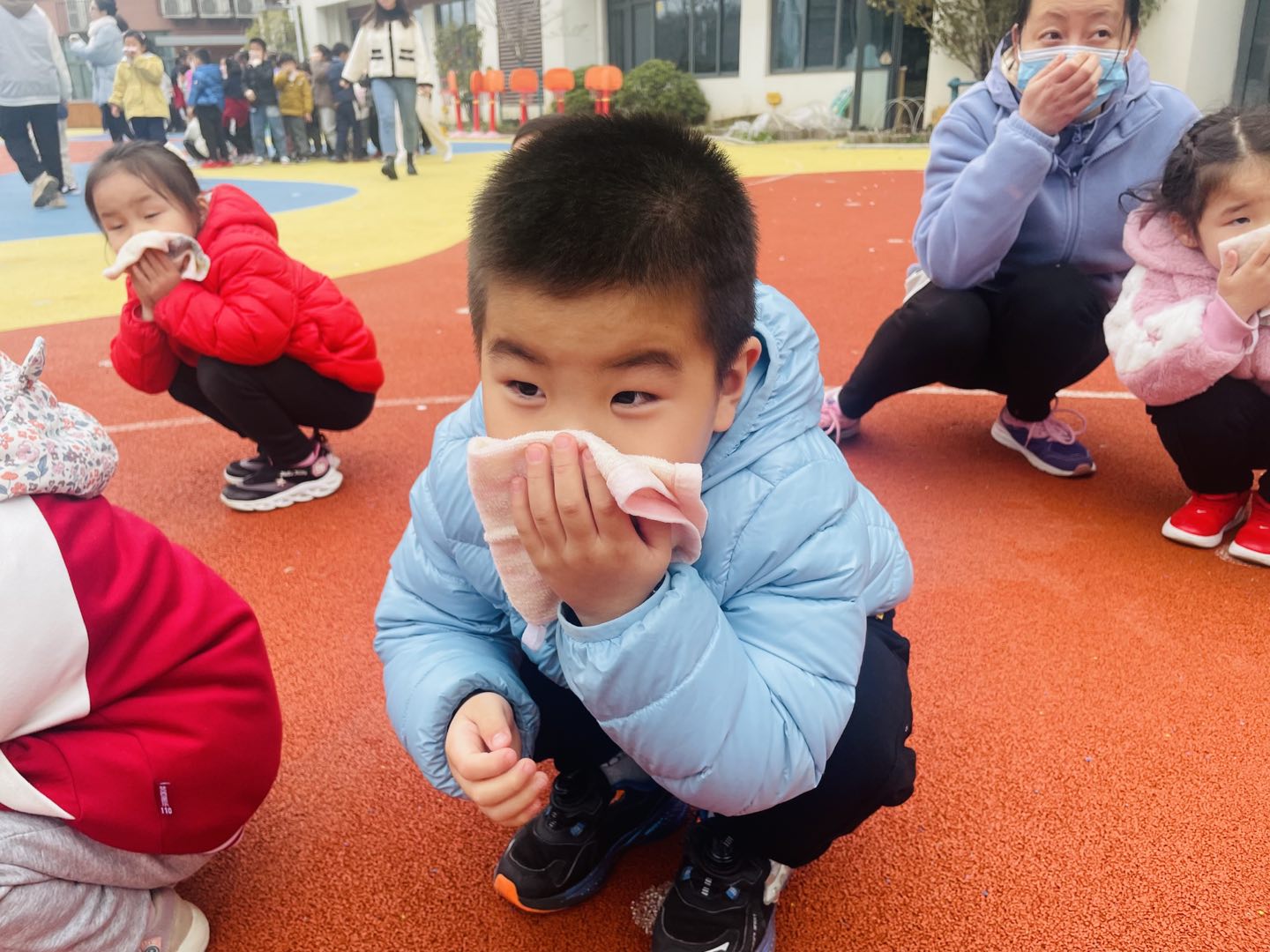 当身穿制服的消防员叔叔们走进小班的教室,孩子们仿佛看到了自己心目中的“超人”,瞪大了眼睛,聚精会神地听着消防员叔叔带来的消防安全知识,跟着消防员叔叔一起学习毛巾捂鼻逃生法。