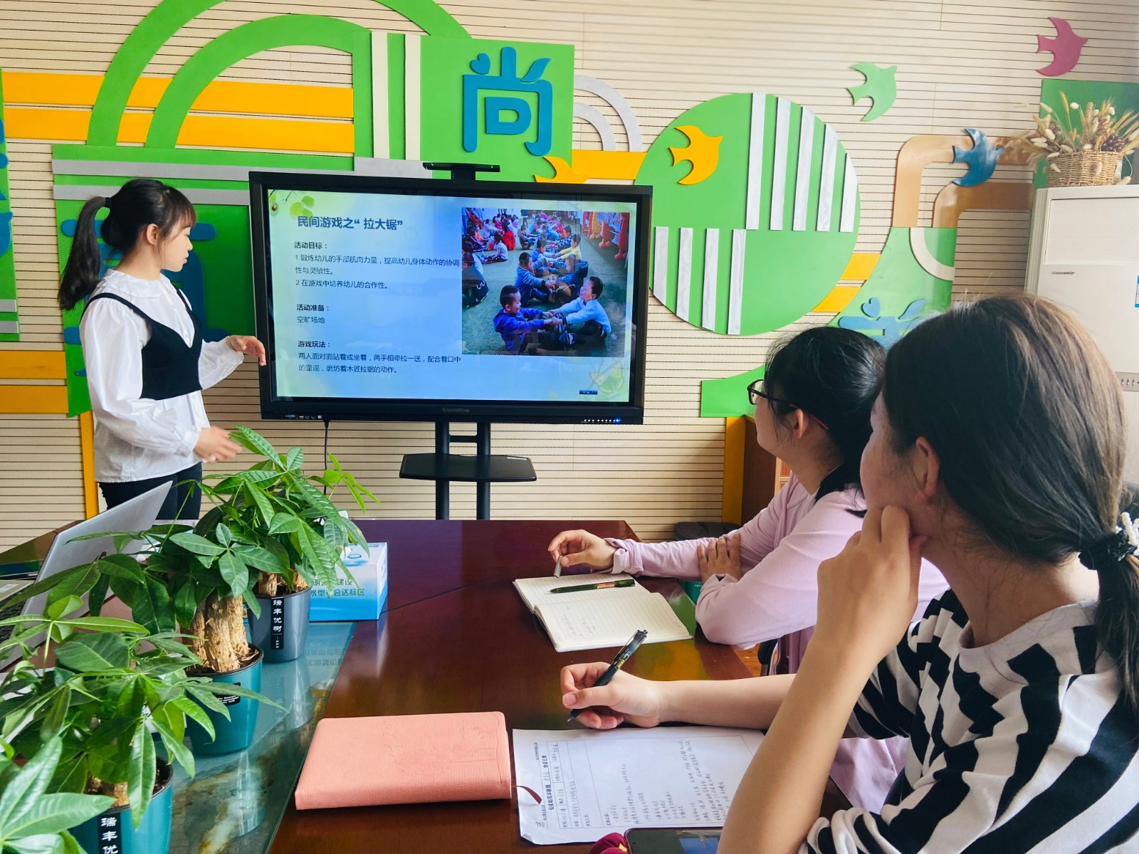 老师们分享后,吴老师还带大家了解了民间体育游戏的分类;比如:走跑类、跳跃类、投掷类、对抗与力量类等,不仅激发了幼儿的潜在乐趣,增强体质,还锻炼了幼儿的交往能力。