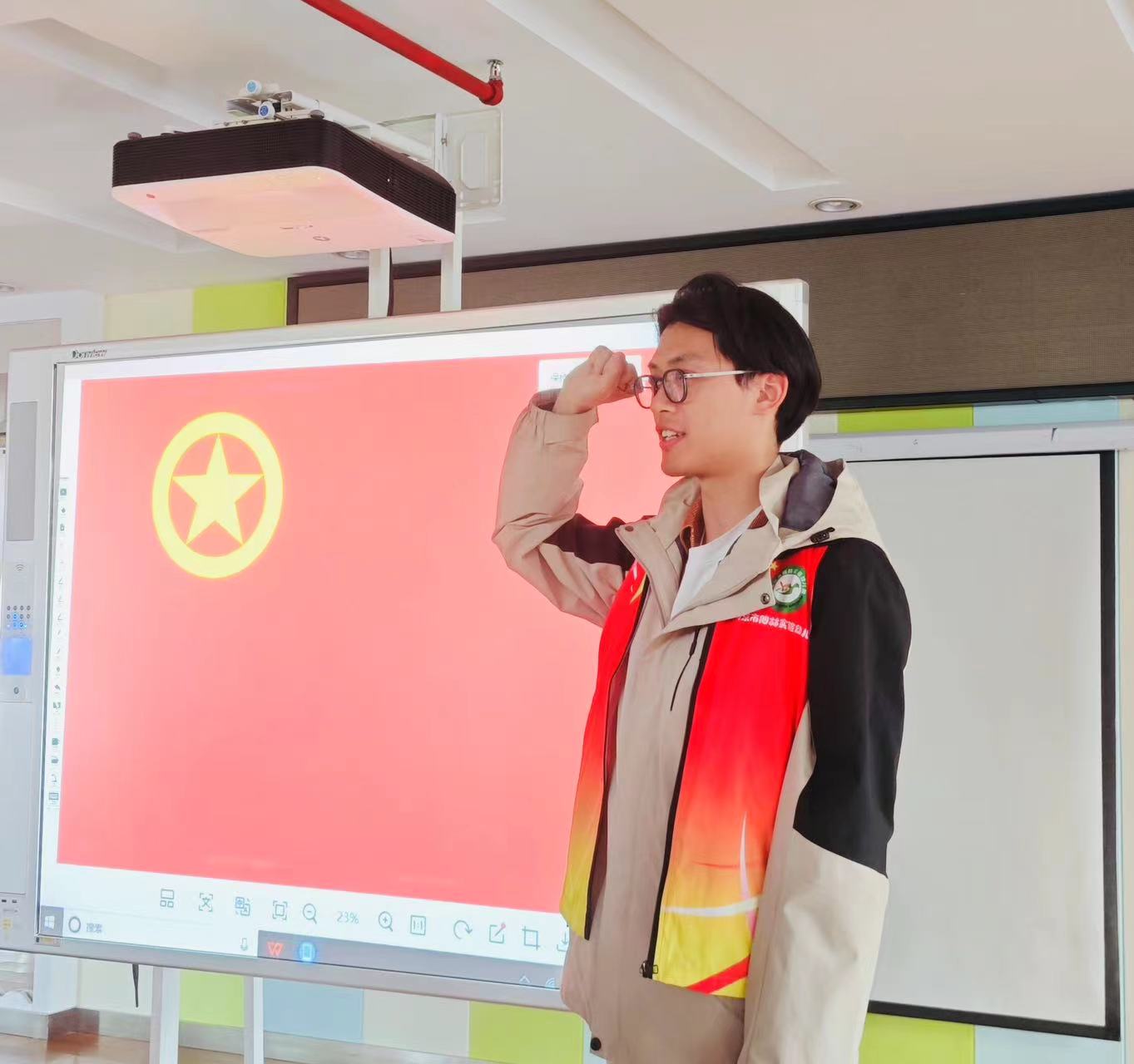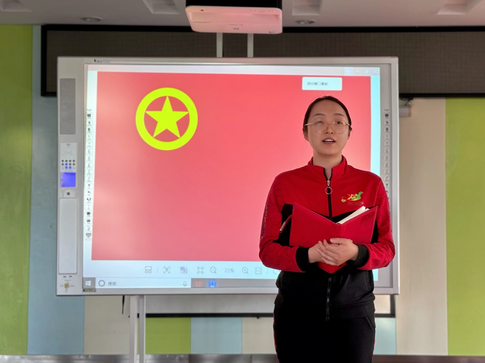 接着由优秀团员教师张浩浩带领大家高举右手,紧握右拳,庄严的重温入团誓词。誓词犹如一盏明灯照亮我们前进的方向,作为新时代的青年,我们有责任传承红色精神,用实际行动践行自己的誓言!