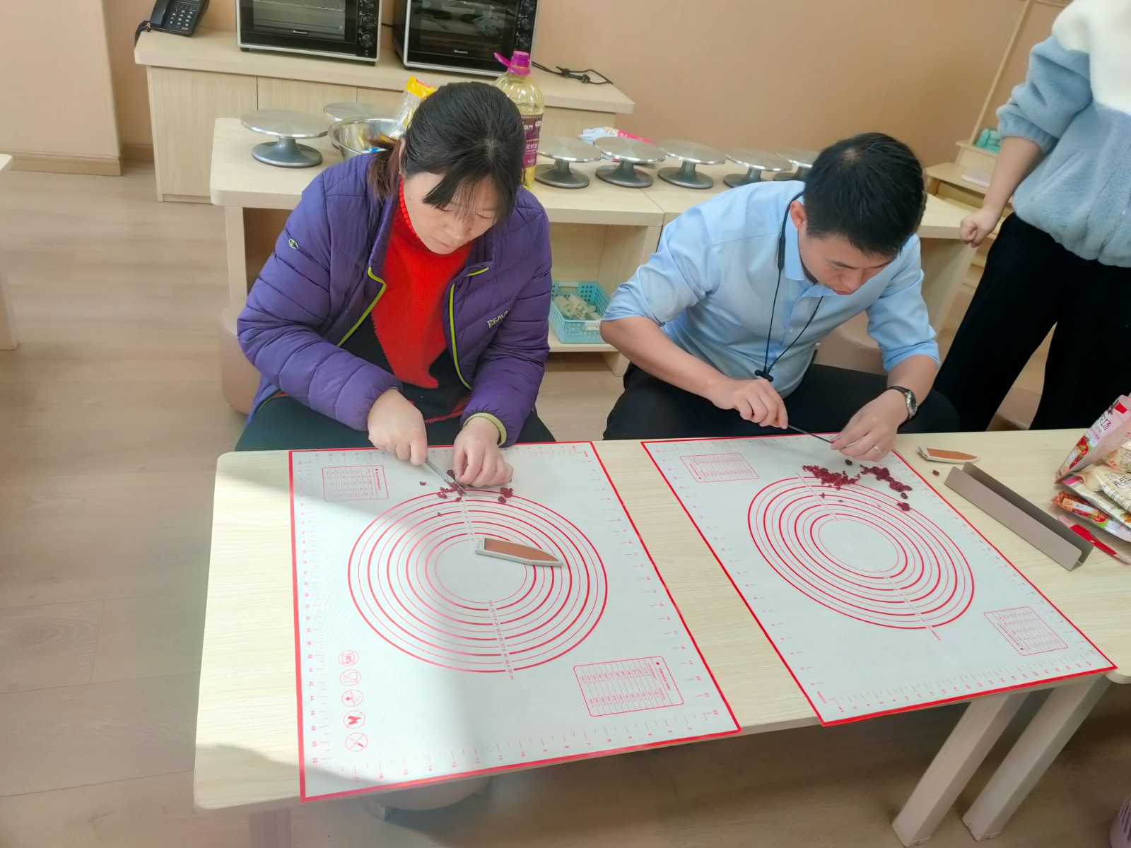 接着老师边讲解边演示制作蔓越莓饼干的全过程,在场的后勤人员认真观看,并在老师的指导下,大家进行了实践操作。