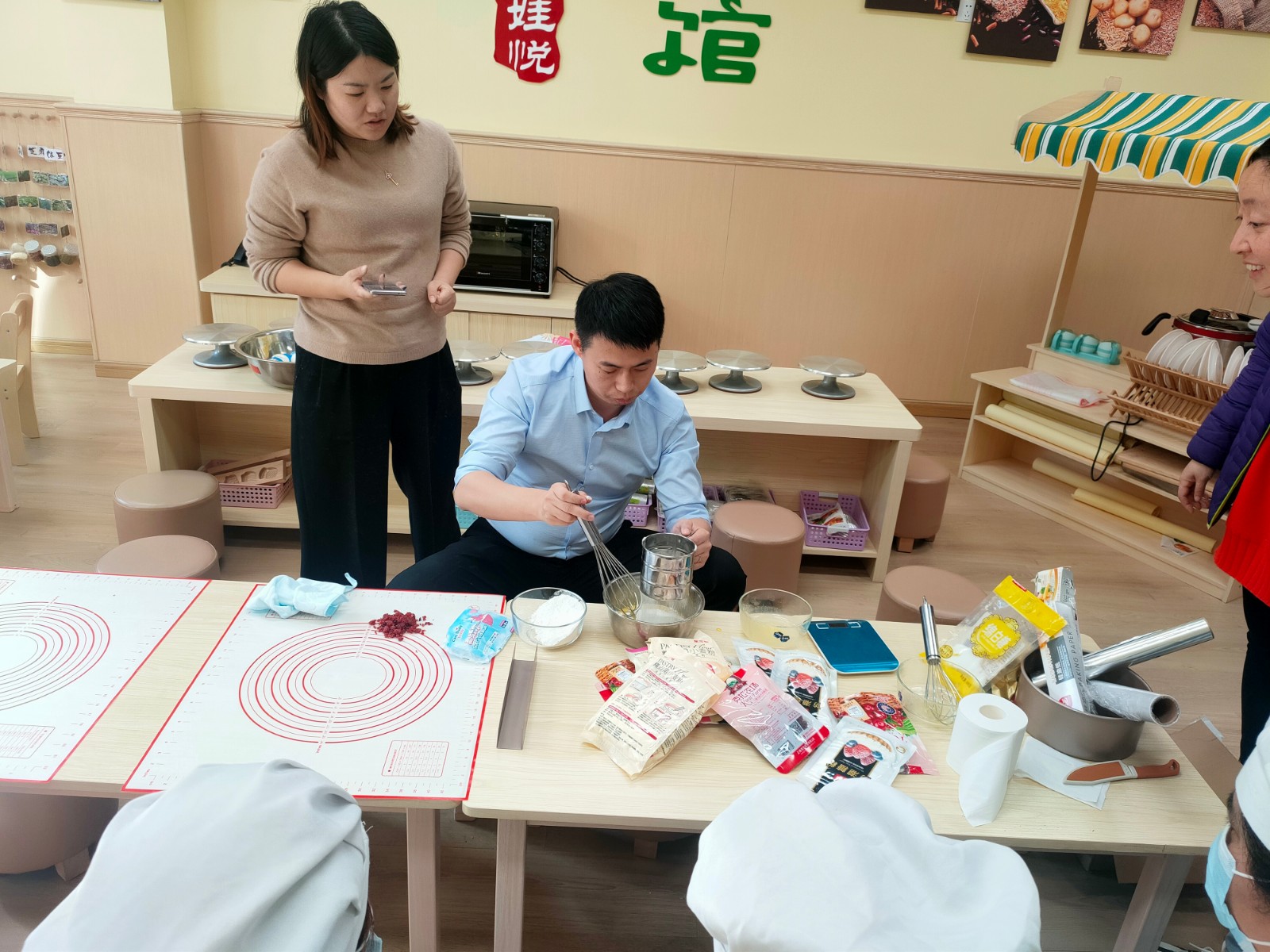 2021年12月17日下午,仙实幼光启路分园烘焙培训在面点间甜蜜开启,培训活动特邀西式面点师做专业指导,园内后勤人员参加了本次活动。