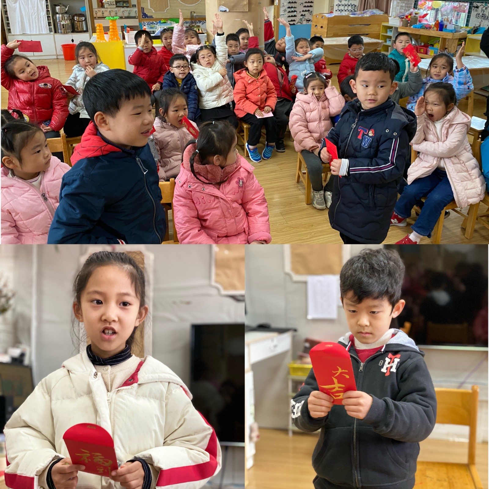 老师们通过视频、故事给小朋友们介绍元宵节的由来,瞧,小朋友们听的可认真啦!