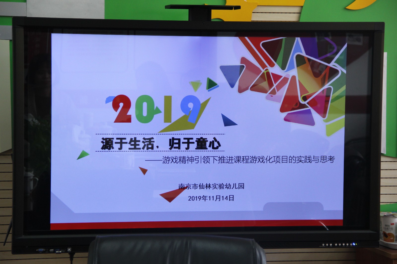 首先由幼儿园教科室杨云主任从我园课程游戏化项目的准备阶段、实施过程及下一步目标进行了清晰的梳理,其中就幼儿园的资源整合、环境改造、课程建构等几方面对专家们进行了详细且生动的专题汇报。