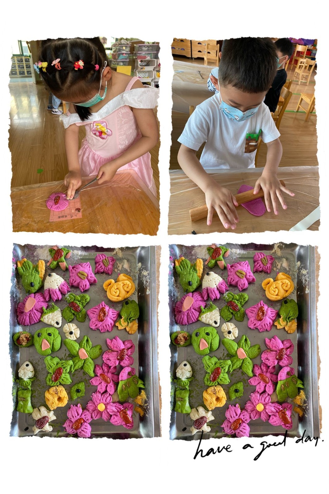 南京市仙林实验幼儿园中班年级组此次结合了幼儿的“食育”教育,引导幼儿通过亲手制作美味的面点,共庆六一儿童节的到来。