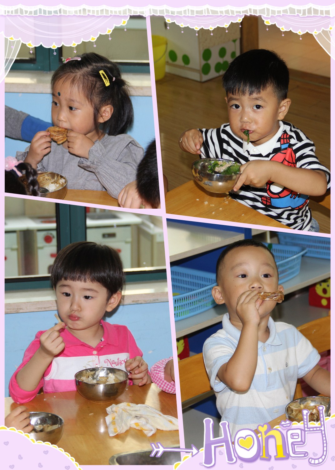 到午餐时间了,瞧!我们吃的多香呀,谢谢食堂阿姨!小班有些宝宝还不习惯独自在陌生的环境里吃午饭,老师便一口一口细心地喂。午睡时,有些小宝贝只有躺在老师的怀抱中才能安然入睡。
