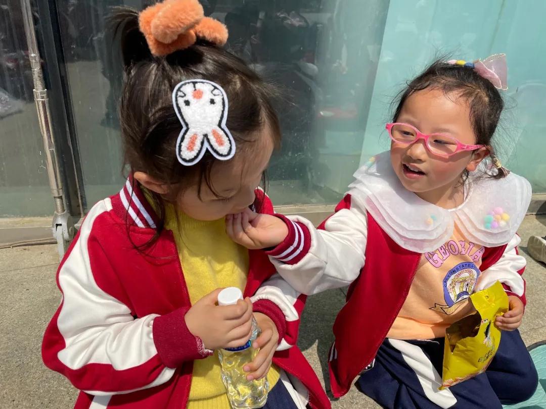 春游最开心的就是去野餐啦!我们和小伙伴、老师们围坐下来,大家一起分享带来的美食!