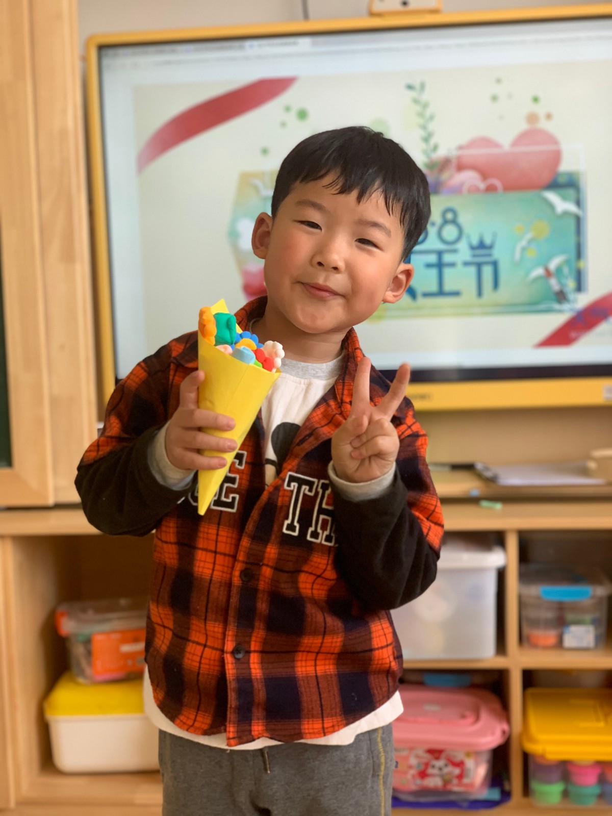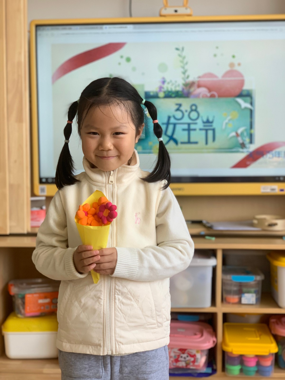 中大班的孩子们用灵巧的小手,为妈妈、奶奶和外婆制作了手工鲜花和手提包。捏出一朵朵小花,搭配在一起变成美丽的花束;制作漂亮的包包,加上暖心的祝福。瞧,浓浓的爱意从心间流出,在手心绽放。